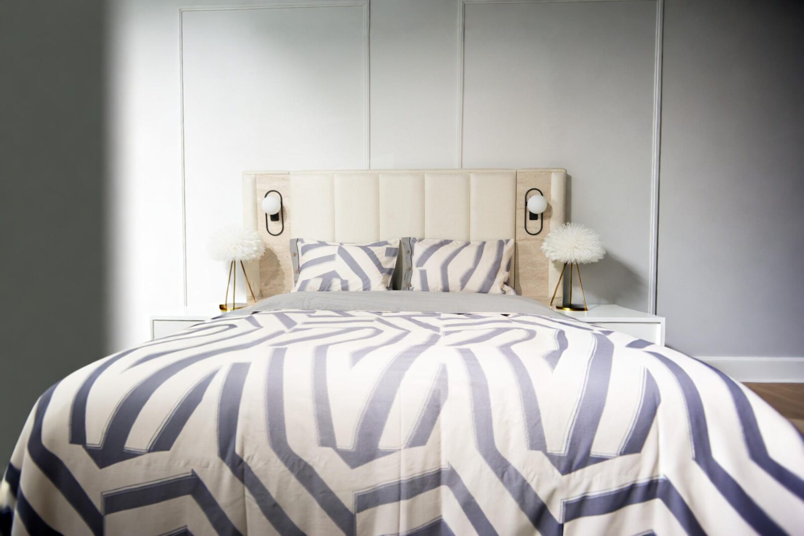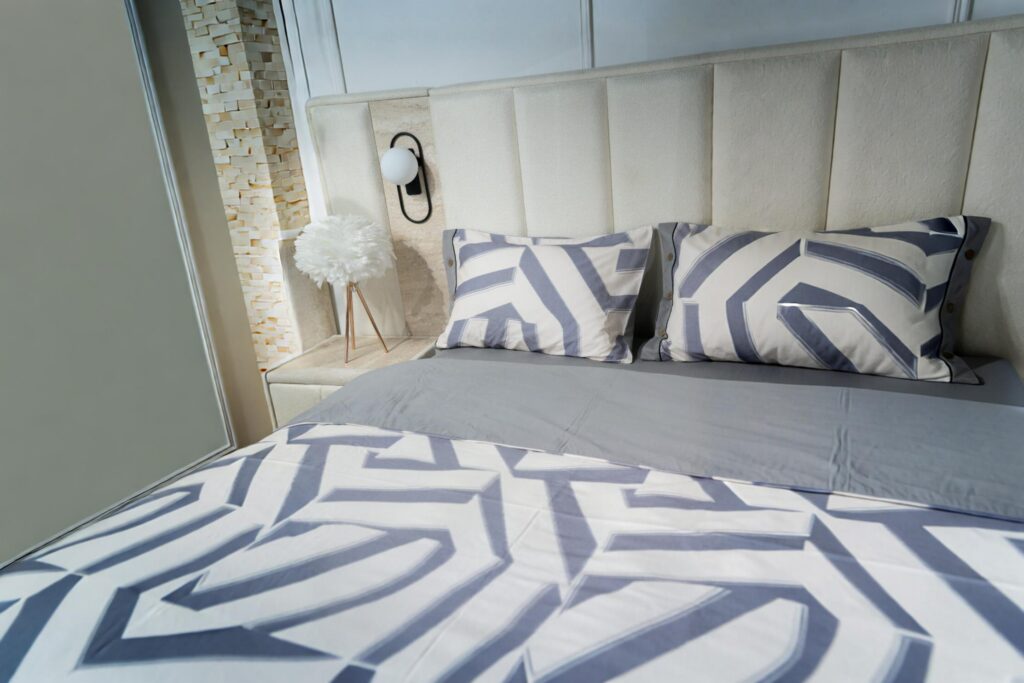 Pensée pour les intérieurs contemporains, cette housse de lit se distingue par son motif graphique épuré et ses teintes gris clair qui apportent équilibre et modernité à la chambre. Son visuel structuré crée une atmosphère calme et ordonnée, idéale pour un espace de repos sobre et élégant.