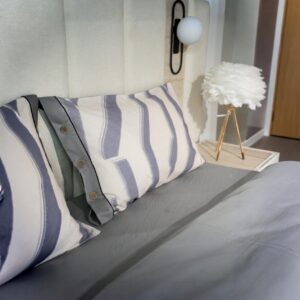 Pensée pour les intérieurs contemporains, cette housse de lit se distingue par son motif graphique épuré et ses teintes gris clair qui apportent équilibre et modernité à la chambre. Son visuel structuré crée une atmosphère calme et ordonnée, idéale pour un espace de repos sobre et élégant.