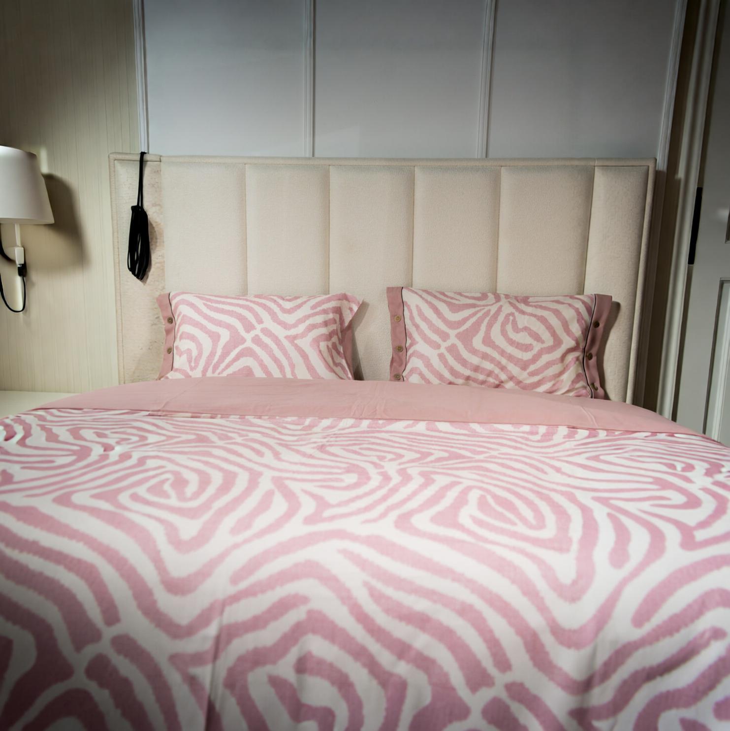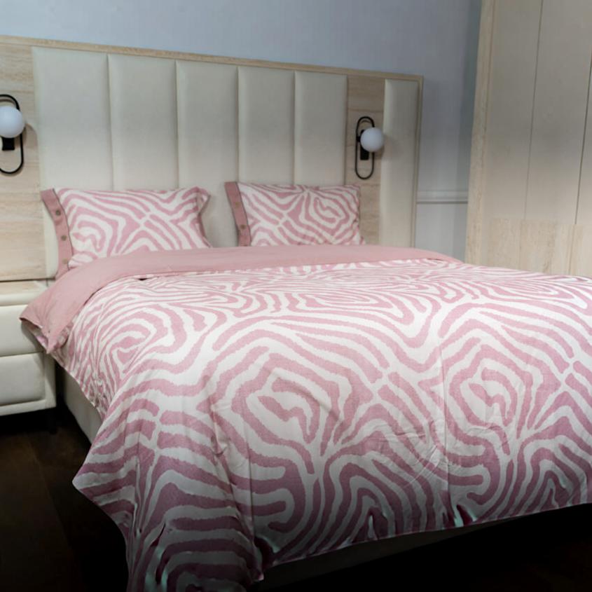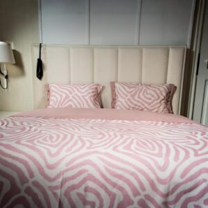 Cette parure de lit aux motifs organiques et aux tons rose poudré transforme la chambre en un espace doux et contemporain. Son design fluide apporte une sensation de calme et de raffinement, tandis que la matière agréable au toucher invite au confort absolu.